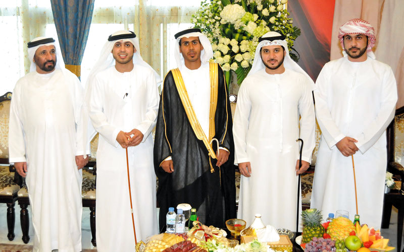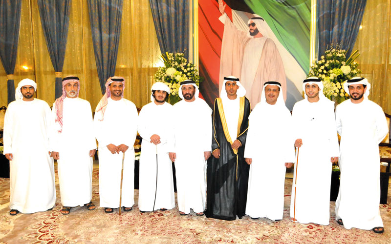 حضر الشيخ شخبوط بن نهيان بن مبارك آل نهيان، حفل الاستقبال الذي أقامه الدكتور إبراهيم علي راشد الكويتي بمناسبة زفاف نجله علي إلى كريمة محمد خادم قطامي المنصوري.