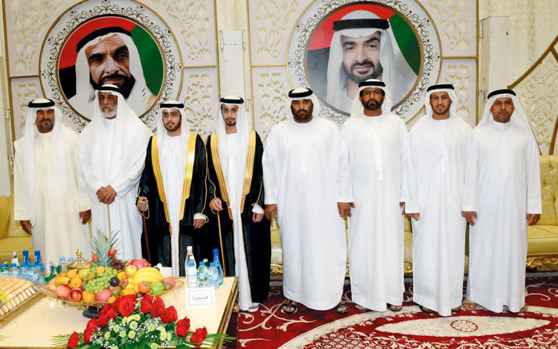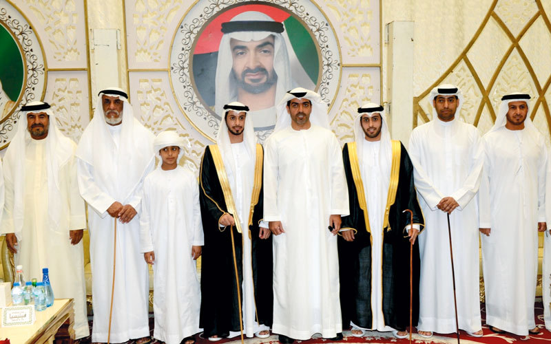 حضر سمو الشيخ حامد بن زايد آل نهيان، رئيس ديوان ولي عهد أبوظبي، والشيخ سعيد بن طحنون، حفل الاستقبال الذي أقامه محمد خلفان بن كنه الشامسي، بمناسبة زفاف نجليه، عبدالله إلى كريمة مبارك خلفان بن كنه الشامسي، وحمدان إلى كريمة عيد جوعان محمد الشامسي.