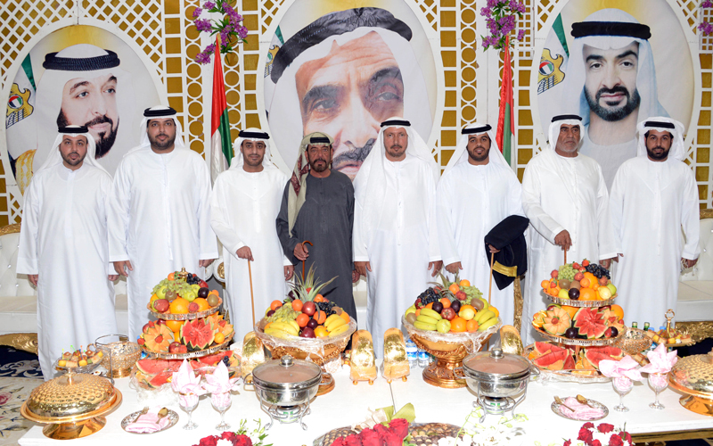 أقام سعيد الذيب النعيمي حفل استقبال بمناسبة زفاف نجله محمد إلى كريمة خلفان سيف الكلباني. وحضر الحفل، الذي أقيم بقاعة الظاهر للأعراس والاحتفالات في مدينة العين، عدد من وجهاء القبائل وكبار الشخصيات والمسؤولين، وجمع من المهنئين، والأهل والأصدقاء وزملاء العريس، وذلك وسط مشاركة فرقة الحربية بعروض وفقرات منوعة من التراث الشعبي.
