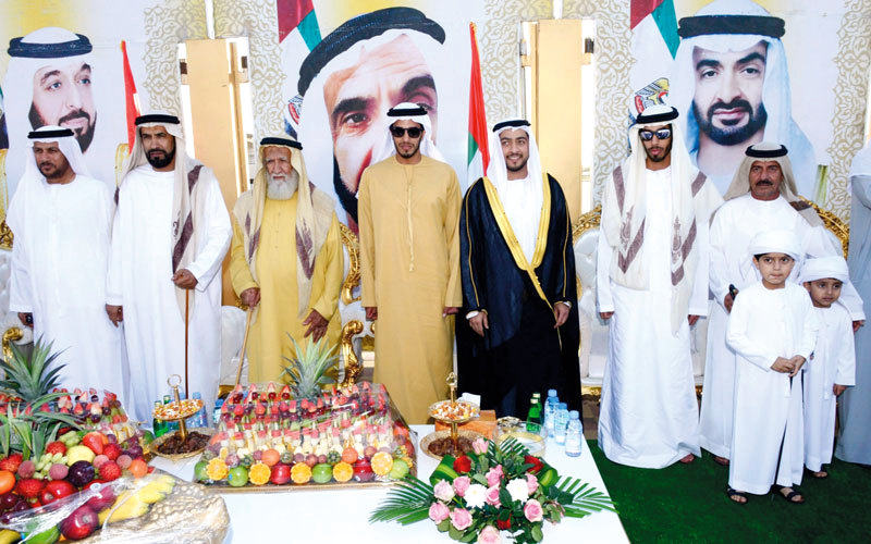 أقام مصبح غميل بن نهيل الشامسي حفل استقبال بمناسبة زفاف نجله راشد إلى كريمة أحمد علي محمد الوهيبي، وذلك بميدان الاحتفالات للأفراح بمنطقة زاخر في مدينة العين.