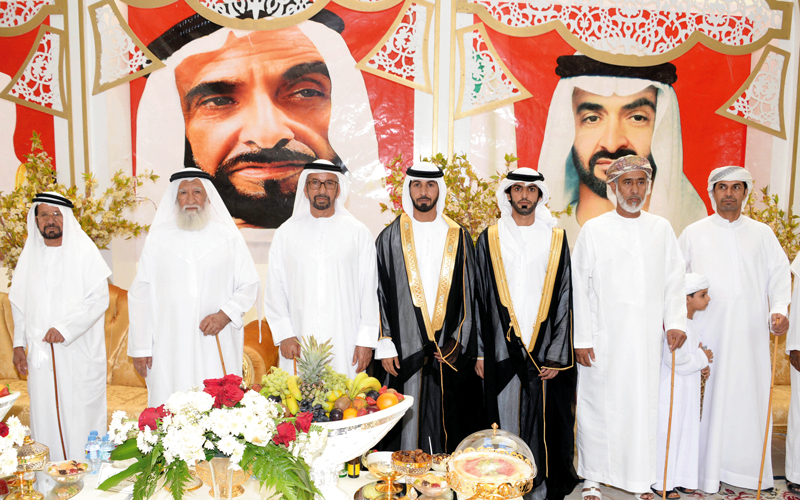 حضر ممثل صاحب السمو رئيس الدولة، أحمد خليفة السويدي، حفل الاستقبال الذي أقيم بقاعة الظاهر للأفراح في منطقة العين، بمناسبة زفاف كلٍّ من: عبدالرحمن سيف عبدالله الكلباني إلى كريمة سيف بن علي الكلباني، وسلطان سيف بن علي الكلباني إلى كريمة سلطان خلفان حمود الكلباني.