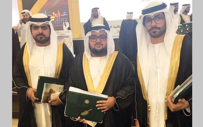 تهنئة من الأصدقاء لكل من أحمد الحمداني ومحمد المرزوقي من كلية القانون، وعبدالله الظاهري من كلية الإدارة والاقتصاد، بمناسبة حصولهم على البكالوريوس وتخرجهم في جامعة الإمارات.. ألف مبروك وإلى الأمام إن شاء الله.