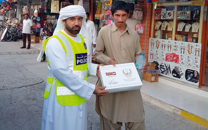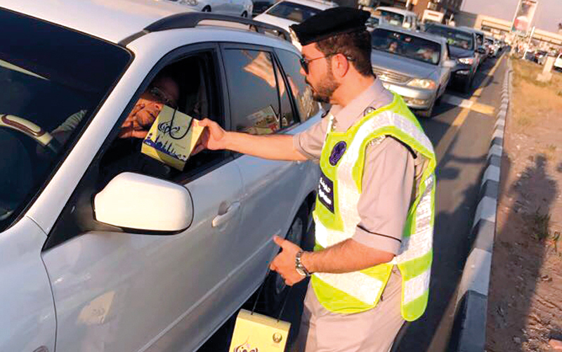 يتوزع رجال الشرطة على العديد من طرق رأس الخيمة قبل أذان المغرب بوقت كافٍ ليطلبوا من سائقي السيارات التوقف، ليس لمخالفتهم، وإنما لإهدائهم وجبة إفطار متكاملة.