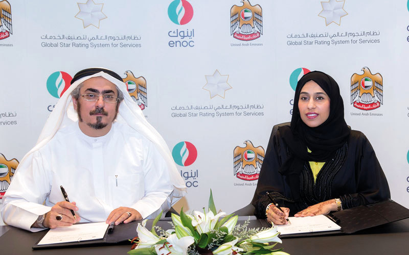 وقع نظام النجوم العالمي لتصنيف الخدمات مذكرة تفاهم مع شركة بترول الإمارات الوطنية «إينوك»، بهدف تعزيز التعاون المشترك وتبادل الخبرات والمعرفة في مجال تطبيق نظام النجوم، بما يسهم في تطوير الخدمات والكفاءات.
