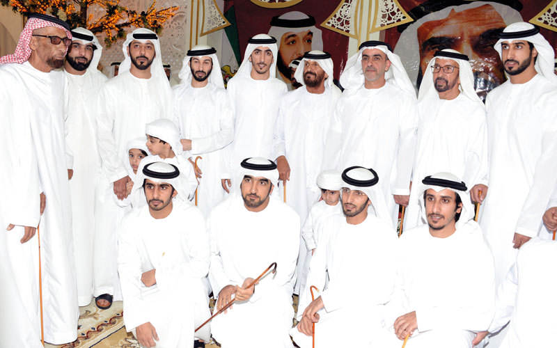 سيف وحامد بن زايد ونهيان بن مبارك يحضرون العرس الجماعي لقبيلة الخييلي