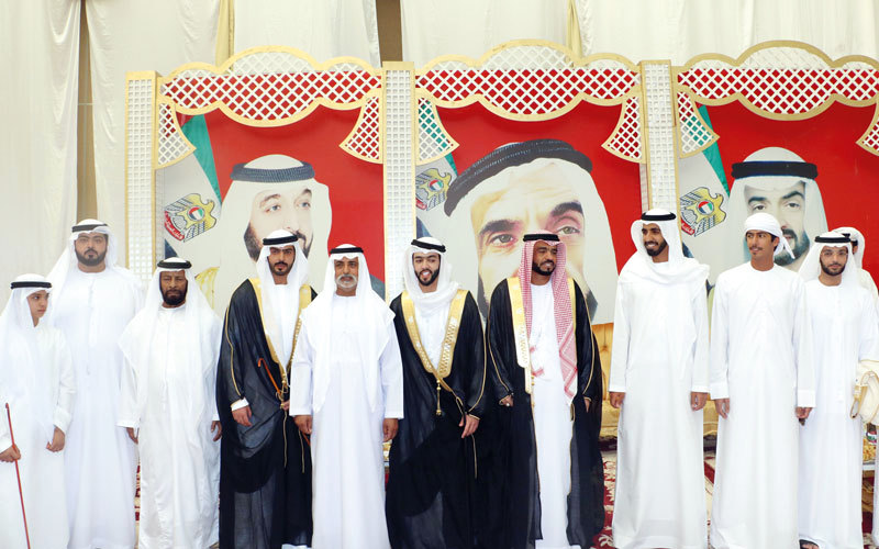 حضر الشيخ نهيان بن مبارك آل نهيان، وزير الثقافة وتنمية المعرفة، حفل الزفاف الذي أقامه هلال عيسى الفلاحي، بمناسبة زفاف نجله عيسى إلى كريمة الدكتور زايد عيسى الفلاحي، وزفاف صقر عيسى فرج الفلاحي إلى كريمة عبيد سالم الظاهري.