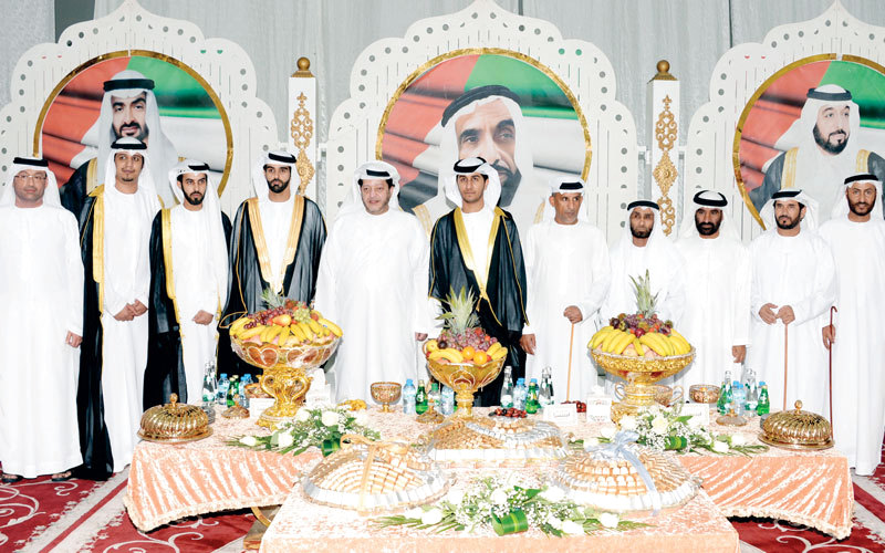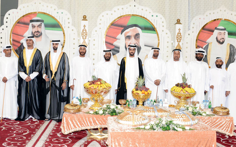 حضر الشيخ نهيان بن مبارك آل نهيان، وزير الثقافة وتنمية المعرفة، والشيخ سعيد بن طحنون آل نهيان، حفل الاستقبال الذي أقيم بقاعة الاحتفالات بمركز العين للمؤتمرات، بمناسبة زفاف كل من: رامس نصيب قعيط يعيل المنهالي إلى كريمة ناصر العوضي المنهالي، وشامس نصيب قعيط يعيل المنهالي إلى كريمة شامس قعيط يعيل المنهالي، وعلي عوض يعيل المنهالي إلى كريمة عزيز نخيرة عزيز مكتوم الشريفي، وحمد علي مبخوت يعيل المنهالي إلى كريمة شامس قعيط يعيل المنهالي.