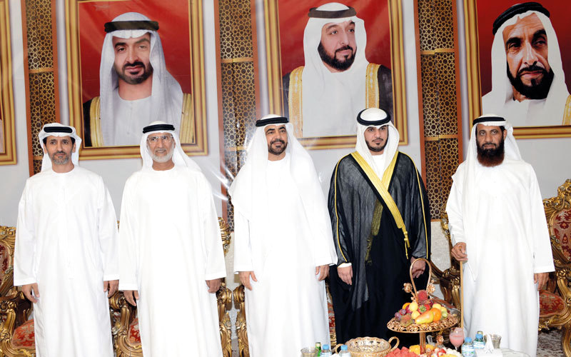 أقام خميس مصبح الغشيش المرر، حفل استقبال بمناسبة زفاف نجله عبدالله إلى كريمة راشد جمعة خميس مويهل الكعبي. حضر الحفل الذي أقيم بقاعة الاحتفالات بمركز العين للمؤتمرات عدد من وجهاء القبائل وكبار الشخصيات والمسؤولين، وحشد من المدعوين والمهنئين والأهل. وتخللت الحفل عروض تراثية ابتهاجاً بالمناسبة.