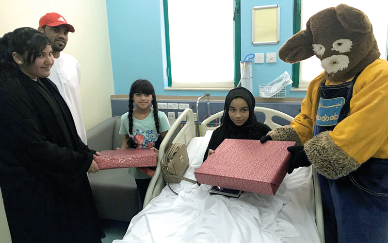 برعاية الشيخ خليفة بن محمد بن خالد آل نهيان، الرئيس الفخري لفريق واجب التطوعي في أبوظبي، أدخل الفريق الفرحة والبهجة والسرور إلى نفوس الأطفال المرضى في المستشفيات، خلال الزيارات التي نظمها بمشاركة الفنان جاسم عبيد الزعابي، صاحب شخصية الدبدوب سفير الصحة، بالتعاون مع قسم التسويق في مدينة الشيخ خليفة الطبية، ومستشفى صقر برأس الخيمة، وكان في استقبالهم الدكتور عارف علي الشحي، المدير التنفيذي بالإنابة للمدينة، وسماح محمود، المدير التنفيذي للتمريض بالإنابة، وإيمان الزعابي، نائب المدير التنفيذي للشؤون الطبية، ومريم غانم، ضابط أول تسويق وعلاقات عامة.