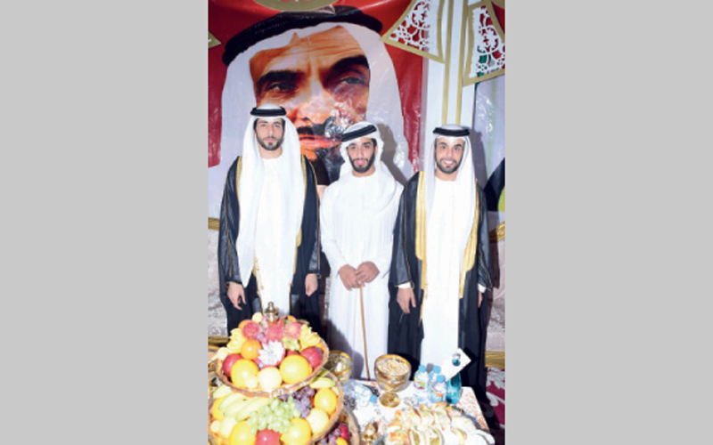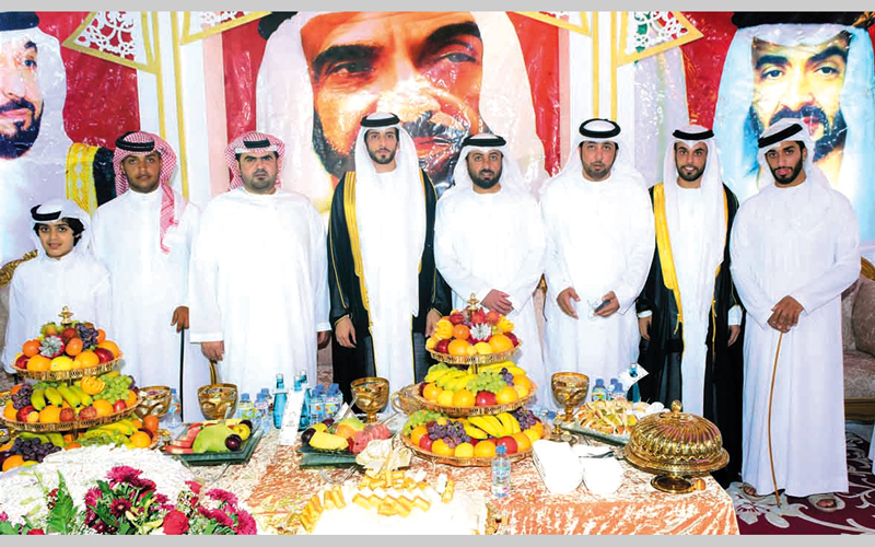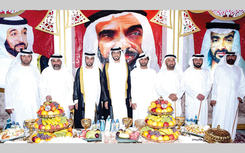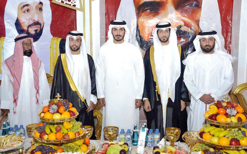 وحضر الحفل، الذي أقيم في صالة أعراس الوثبة بأبوظبي، عدد من المسؤولين وكبار الشخصيات، ولفيف من الأهل والمهنئين. وتخللت الحفل عروض فنية متنوعة من وحي التراث الإماراتي الأصيل.