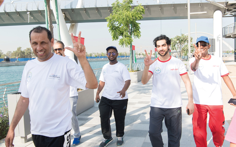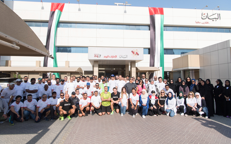وشارك في التحدي عدد من المسؤولين في القطاع، ونحو 200 موظف من المؤسسة، حيث قاموا بتمارين اللياقة، ومسيرة على ضفاف قناة دبي المائية، وعبر جسر التسامح فوق القناة. وحضر المشاركون من قطاع النشر من صحيفتي «الإمارات اليوم»، و«البيان»، وموقعي «إمريتس 247»، و«دبي بوست»، ومن قطاع الطباعة والتوزيع.