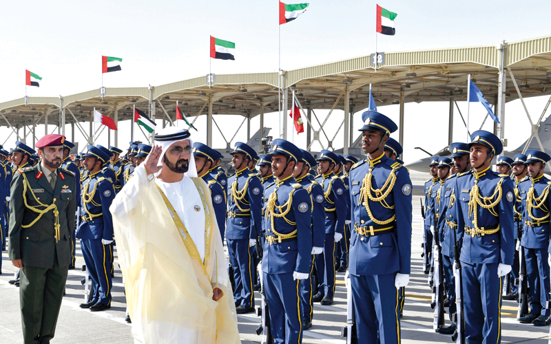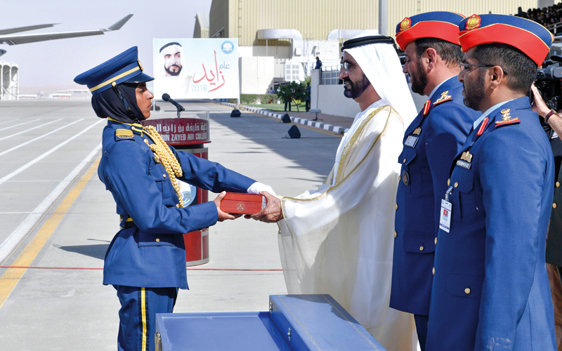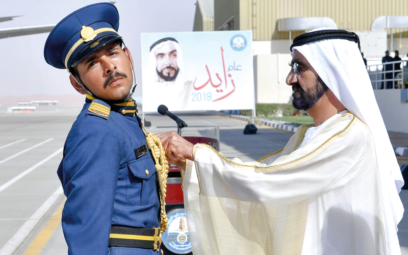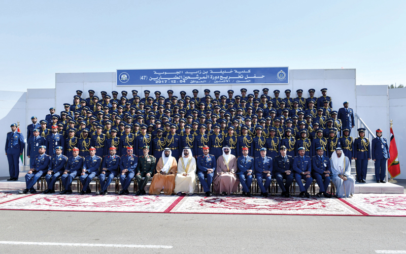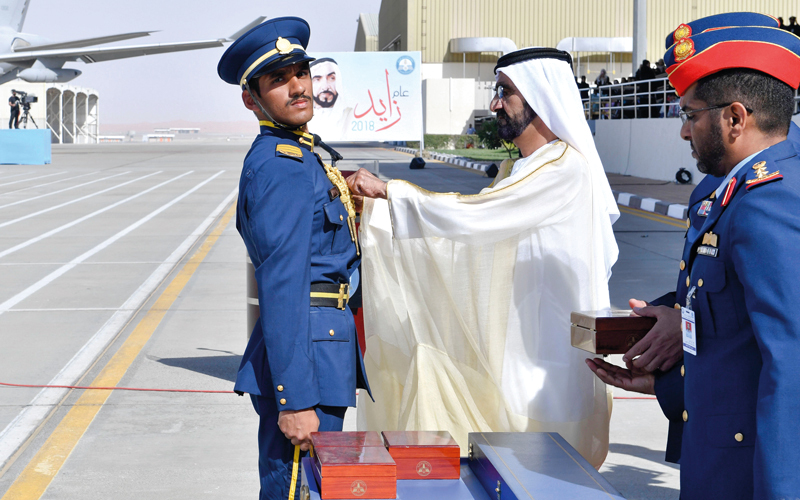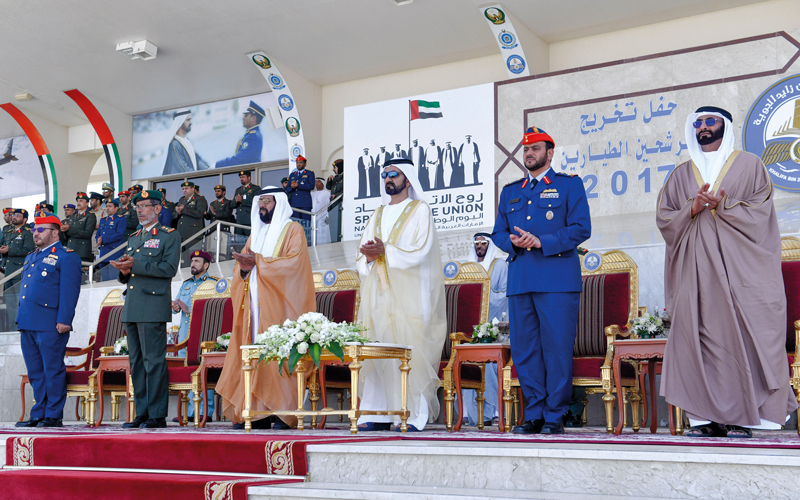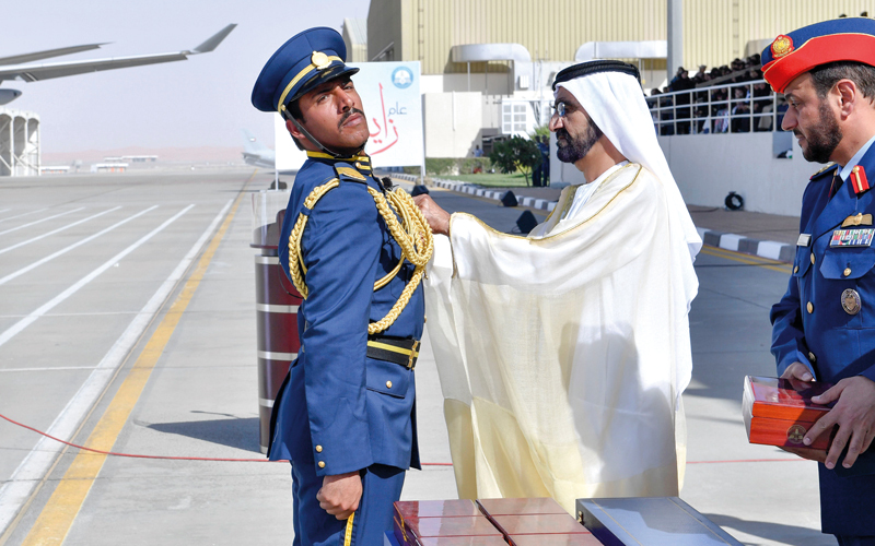 محمد بن راشد يرعى حفل تخريج الدفعة 47 من المرشحين الطيارين والضباط الجويين في العين