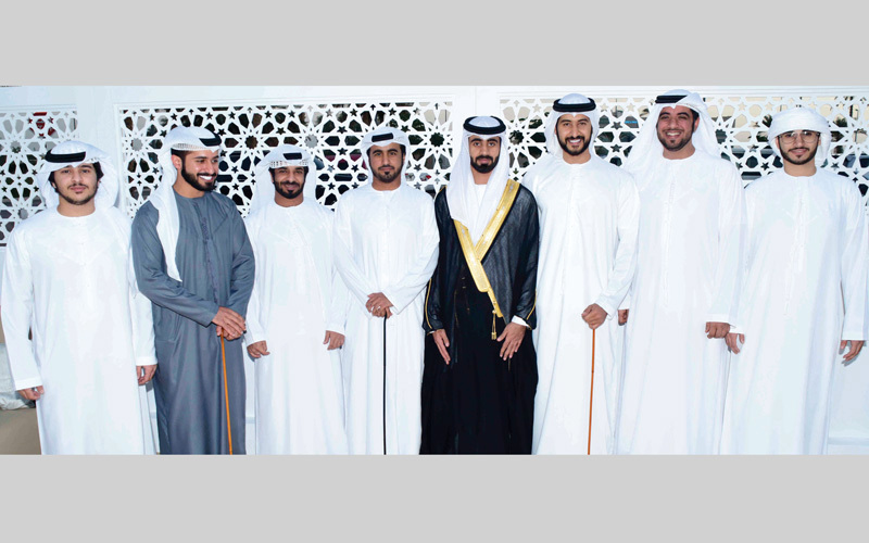 كما حضر الحفل، الذي أقيم في صالة أعراس الخبيصي بمدينة العين، عدد من المسؤولين وكبار الشخصيات، وجمع من المدعوين والأهل. وتخللت الحفل عروض متنوعة من وحي التراث الإماراتي، ابتهاجاً بالمناسبة.