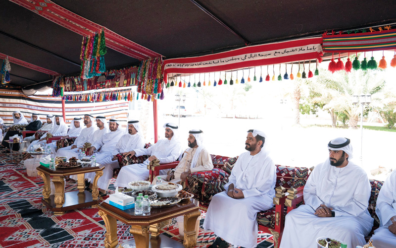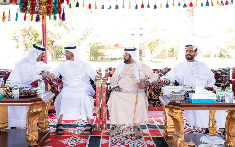 وتبادل الجميع الأحاديث الودية التي تعكس عمق الروابط التي تجمع القيادة الحكيمة بأبناء الوطن، وحرصها على التواصل والالتقاء بهم في نهج أصيل ومتواصل، منذ عهد المغفور له الشيخ زايد بن سلطان آل نهيان، طيب الله ثراه، داعين الله عز وجل أن يديم الصحة والعافية على صاحب السموّ الشيخ خليفة بن زايد آل نهيان، رئيس الدولة، «حفظه الله»، وأن ينعم على وطننا الغالي بالخير والأمن والامان.