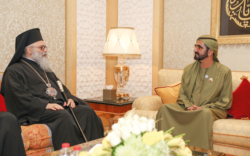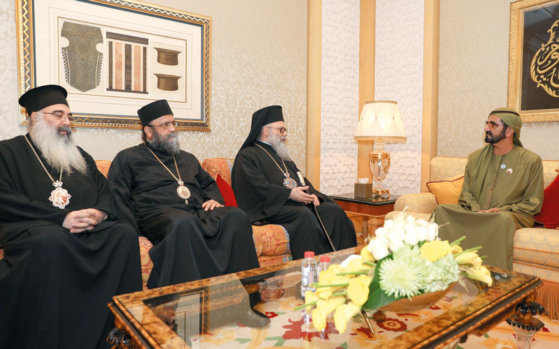 جاء ذلك خلال استقبال سموه في قصره في زعبيل، قبل ظهر أمس، بحضور سمو الشيخ مكتوم بن محمد بن راشد آل مكتوم، نائب حاكم دبي، غبطة البطريرك يوحنا العاشر، بطريرك أنطاكيا وسائر المشرق للروم الأرثوذكس، والوفد المرافق، الذي قدّم إلى صاحب السمو الشيخ محمد بن راشد آل مكتوم، أسمى آيات الشكر والتقدير، على التسهيلات التي تمنحها دولة الإمارات، قيادة وحكومة، إلى الطوائف المسيحية وأتباعها المنخرطين في مجتمع الإمارات، الذين يعيشون بسلام وأمان وراحة نفسية، ويتمتعون بكامل الحرية في ممارسة شعائرهم الدينية كغيرهم من أتباع الديانات الأخرى دون تمييز.