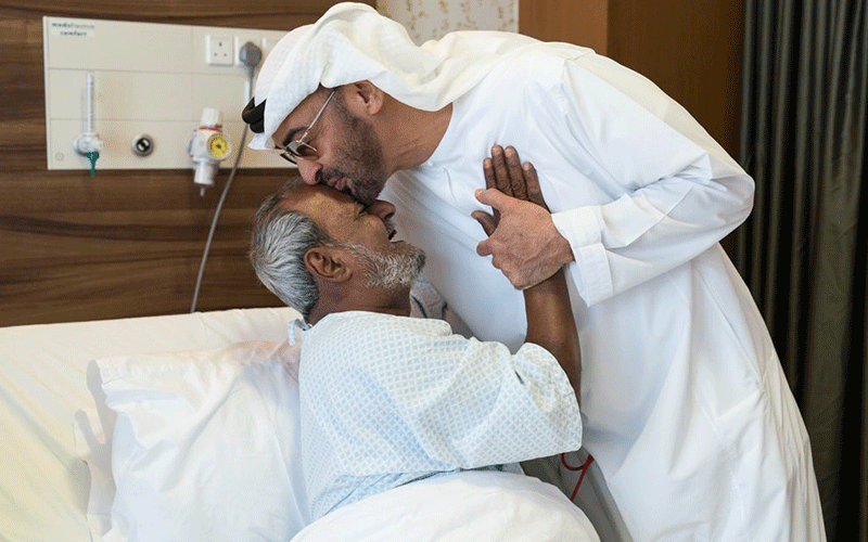 محمد بن زايد يزور الشاعر والفنان اليمني فضل محمود صالح في مستشفى برجيل