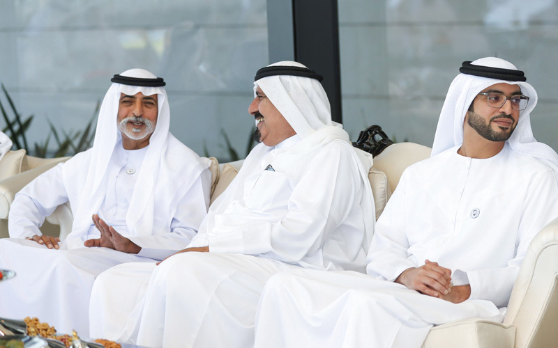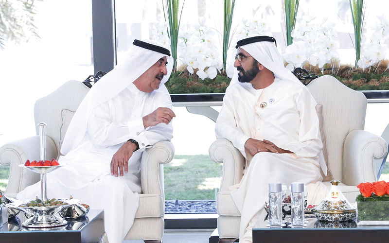 محـمـد بن راشــد ومحمـد بــن زايـــد والحكام يحضرون مأدبة غداء أقامها حاكم عجمان