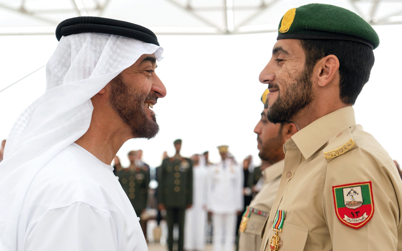محمد بن زايد يقلّد أبطال القوات المسلحة أوسمة الشجاعة تقديراً لمواقفهم البطولية
