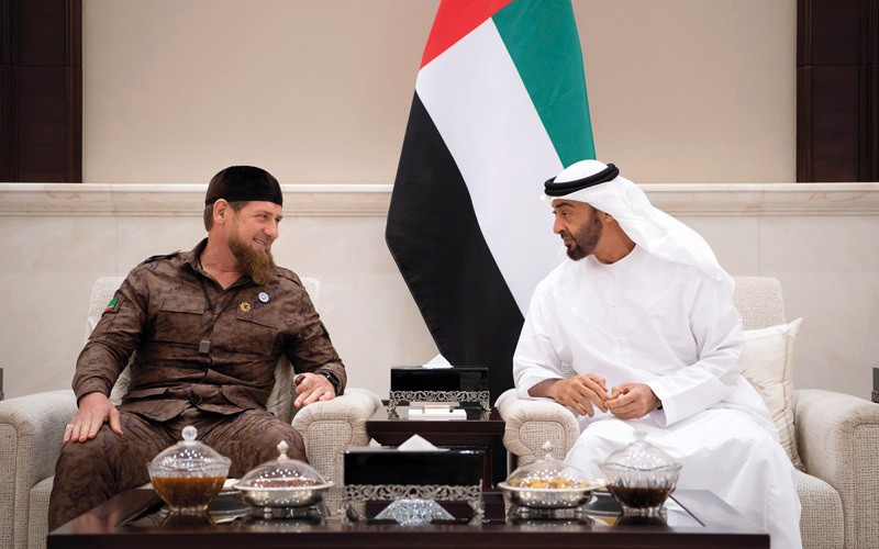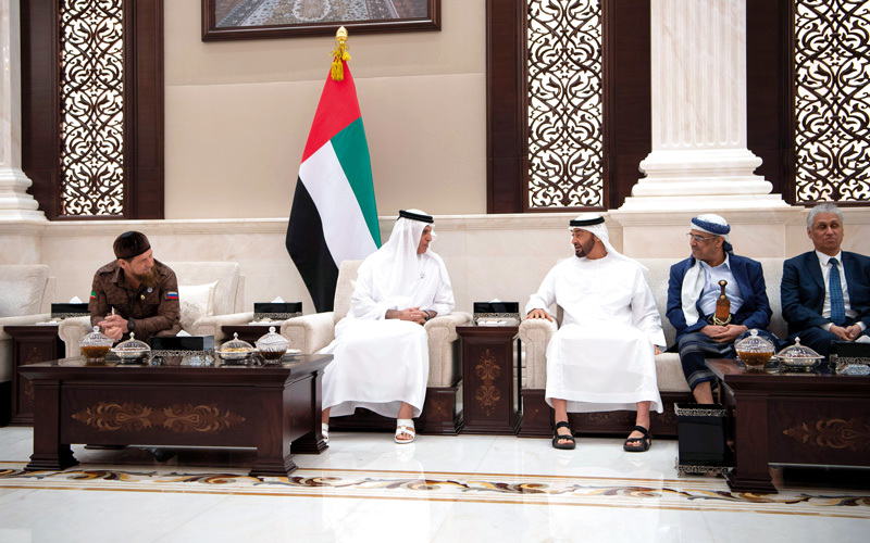 محمد بن زايد يستقبل حاكم رأس الخيمة والرئيس الشيشاني ونائب رئيس الوزراء اليمني