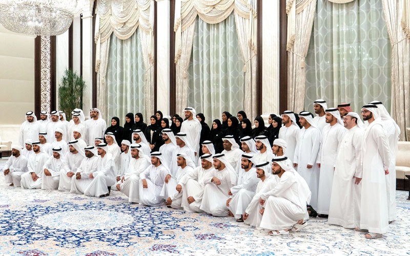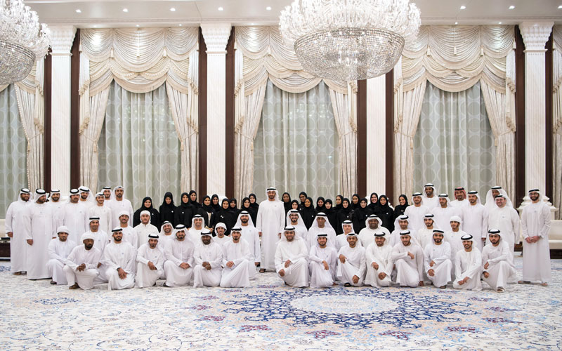 محمد بن زايد يستقبل ولي عهـد أم القيوين وأبناء وذوي الشهداء ووفود جهات وطنية