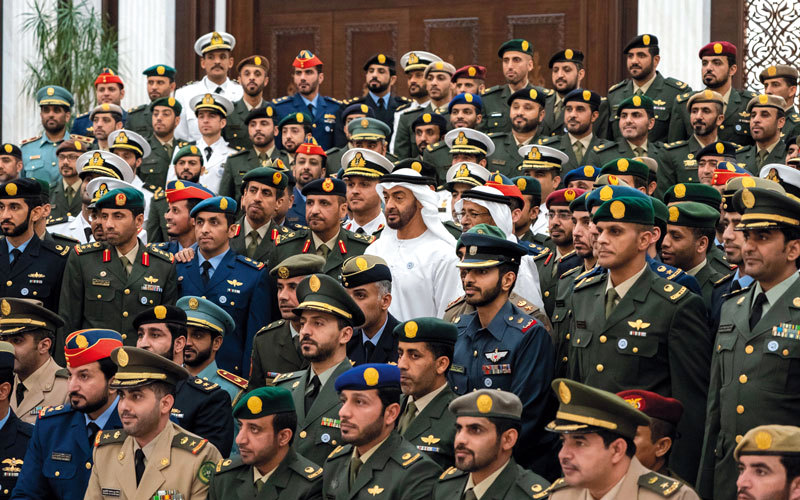 من جانبهم، أعربت الوفود عن سعادتهم بلقاء سموه، مؤكدين اعتزازهم وفخرهم بالإسهام في خدمة وطن الخير، وكل ما من شأنه تعزيز مكانته. وأكد صاحب السمو ولي عهد أبوظبي نائب القائد الأعلى للقوات المسلحة حرص قيادة دولة الإمارات على الاهتمام بأبناء وأسر الشهداء، وتقديرها جهودهم في تنشئة أبنائهم على قيم الفداء والتضحية والولاء والانتماء للوطن، وهذا نهج دولة الإمارات في مسيرتها المباركة. وقال سموه إن «الدولة تحرص على مواصلة تقديم كل الدعم والعناية لذوي الشهداء، فخراً ووفاء لتضحيات ودماء أبنائهم الأبرار، فهم الأمانة الغالية التي وضعوها في أعناقنا». وفي لقائه مع خريجي كلية القيادة والأركان المشتركة وكلية الدفاع الوطني، أعرب سموه عن أمنياته لهم ولجميع خريجي أبناء وطننا الغالي التوفيق والنجاح في الإسهام في بناء وطنهم وتعزيز مكتسباته وإنجازاته، في ظل مسيرة الخير والعطاء والتنمية التي يشهدها في مختلف المجالات.