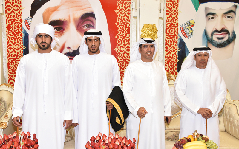 احتفل حمد جوعان حمد الشامسي بمناسبة زفاف نجله مبارك إلى كريمة حميد راشد بالعبده الشامسي، وذلك في قاعة الاحتفالات بمنطقة زاخر في مدينة العين.