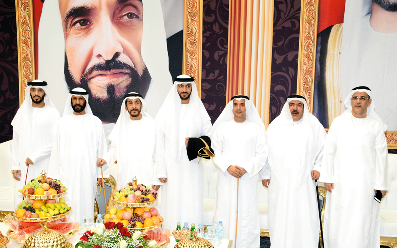 حضر الشيخ سعيد بن طحنون بن محمد آل نهيان، حفل الاستقبال الذي أقامه حميد عبدالله بن عمير الشرياني، بمناسبة زفاف نجله عبدالله، إلى كريمة سيف هلال بن خصيف الكعبي.