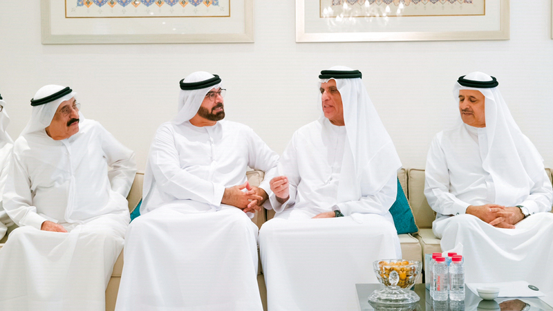 محمد بن راشد وسعود بن صقــــر يقدمان واجب العزاء في وفاة والدة القرقـــاوي
