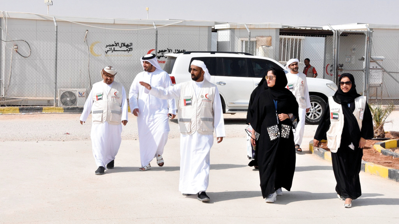 زار وفد من منطقة عجمان الحرة برئاسة مديرة التسويق والاتصال والعلاقات العامة بمنطقة عجمان الحرة رفيعة علي السويدي، المخيم الإماراتي الأردني بمحافظة الزرقاء والمستشفى الميداني بالمفرق في المملكة الأردنية الهاشمية، للتعرف إلى المخيم ومكوناته وتفقد أحوال اللاجئين السوريين وأسرهم والخدمات التي يوفرها الهلال الأحمر الإماراتي للاجئين المقيمين في المخيم وفي عدد من المخيمات الأخرى بالأردن. وكان في استقبال الوفد مدير المخيم الإماراتي بالأردن محمد مبارك المنصوري، ومدير المستشفى الدكتور يوسف النعيمي، واطلع أعضاء الوفد من خلال عرض فيلم مفصل عن سير العمل على أهداف المخيم وأقسامه ومكوناته والخدمات الصحية والتعليمية والاجتماعية والدور الإنساني الذي يقوم به الهلال الأحمر الإماراتي لخدمة اللاجئين السوريين وأسرهم، بالإضافة إلى زيارة المستشفى الإماراتي الأردني بمنطقة المفرق الأردنية. وقام وفد منطقة عجمان الحرة بجولة ميدانية في المخيم ابتدأها بزيارة المدرسة حيث اطلع الوفد الزائر على سير الدراسة بمدارس المخيم، بعدها زار كلاً من المجمع الثقافي وقاعة المناسبات ومشغل أمنا فاطمة للتطريز والحياكة الخاص بتعليم اللاجئات السوريات مهنة الخياطة لتعود عليهن بمردود مالي خلال إقامتهن بالمخيم وفي المستقبل، وفي ختام الجولة قام أعضاء الوفد بزيارة المركز الطبي بالمخيم والتعرف إلى جميع اقسامه المختلفة، إضافة الى تفقد مستودعات المخيم الخاصة بتخزين جميع المواد التموينية والاستهلاكية.