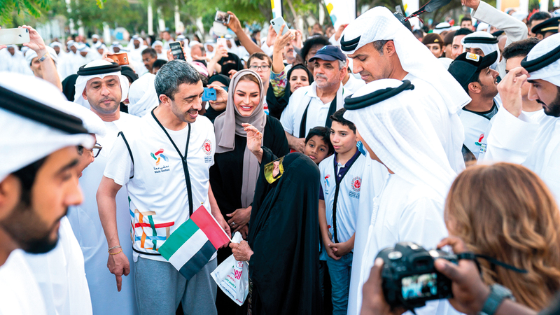 وتعد المسيرة، التي شارك فيها حشد من القيادات الاتحادية والمحلية والدينية والرياضية، وسفراء الدول الشقيقة والصديقة، وعدد كبير من أفراد الجاليات التي تقيم على أرض إمارات الخير، بداية للمهرجان الوطني للتسامح، الذي تنظمه وزارة التسامح، بالتعاون مع «طيران الإمارات»، تحت شعار «على نهج زايد».