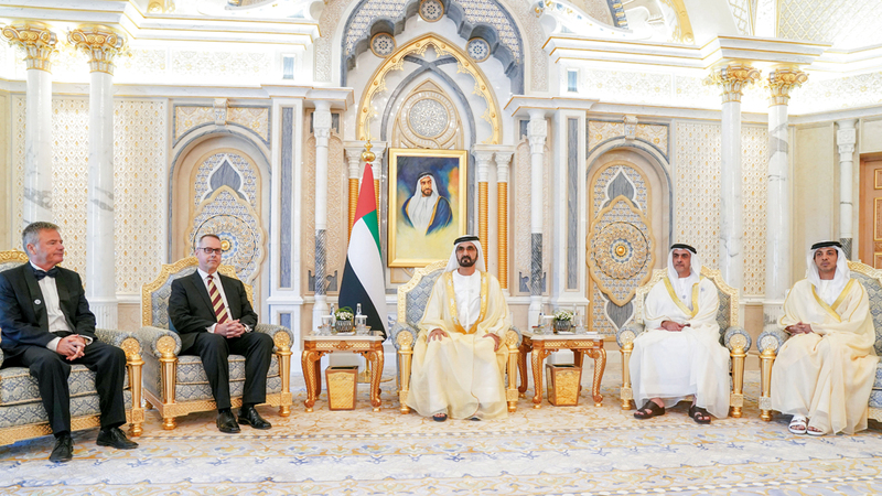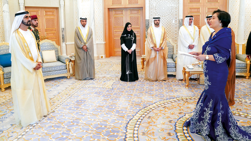 تسلّم صاحب السمو الشيخ محمد بن راشد آل مكتوم، نائب رئيس الدولة رئيس مجلس الوزراء حاكم دبي، في قصر الرئاسة بالعاصمة أبوظبي صباح أمس، بحضور سمو الشيخ حمدان بن محمد بن راشد آل مكتوم، ولي عهد دبي، ورئيسة المجلس الوطني الاتحادي، الدكتورة أمل عبدالله القبيسي، والفريق سمو الشيخ سيف بن زايد آل نهيان، نائب رئيس مجلس الوزراء وزير الداخلية، وسمو الشيخ منصور بن زايد آل نهيان، نائب رئيس مجلس الوزراء وزير شؤون الرئاسة، أوراق اعتماد عدد من سفراء الدول الصديقة المعيّنين لدى الدولة.