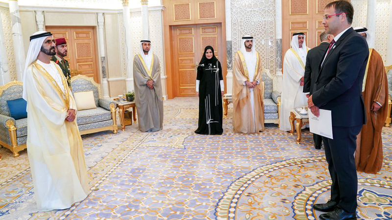 محمد بن راشد يتسلّم أوراق اعتماد عدد من سفراء الدول الصديقة