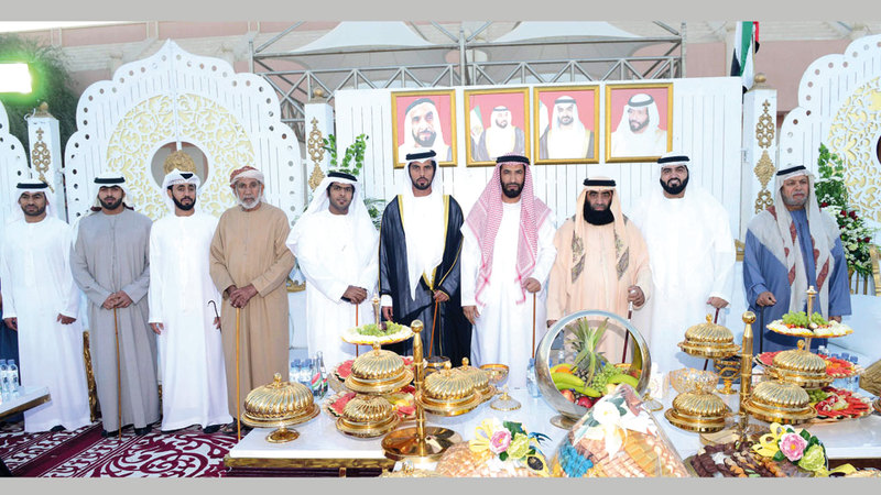 حضر الشيخ سعيد بن طحنون بن محمد آل نهيان، الحفل الذي أقامه علي سليمان المطلعي، بمناسبة زفاف نجله محمد إلى كريمة خلفان راشد الغيثي، وذلك في قاعة الاحتفالات بالهيلي في العين.