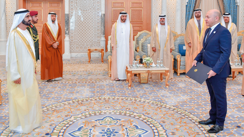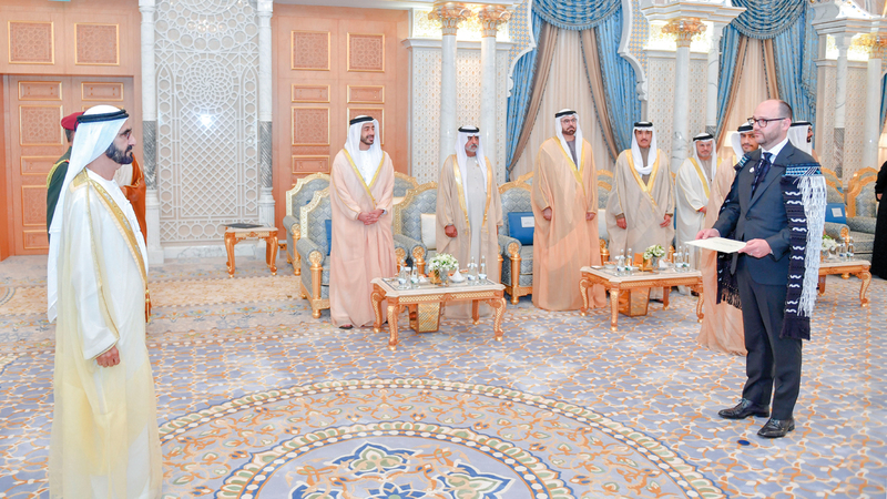 تسلّم صاحب السموّ الشيخ محمد بن راشد آل مكتوم، نائب رئيس الدولة رئيس مجلس الوزراء حاكم دبي، في قصر الرئاسة بالعاصمة أبوظبي، صباح أمس، بحضور سموّ الشيخ عبدالله بن زايد آل نهيان، وزير الخارجية والتعاون الدولي، أوراق اعتماد عدد من سفراء الدول الشقيقة والصديقة المعينين لدى الدولة.