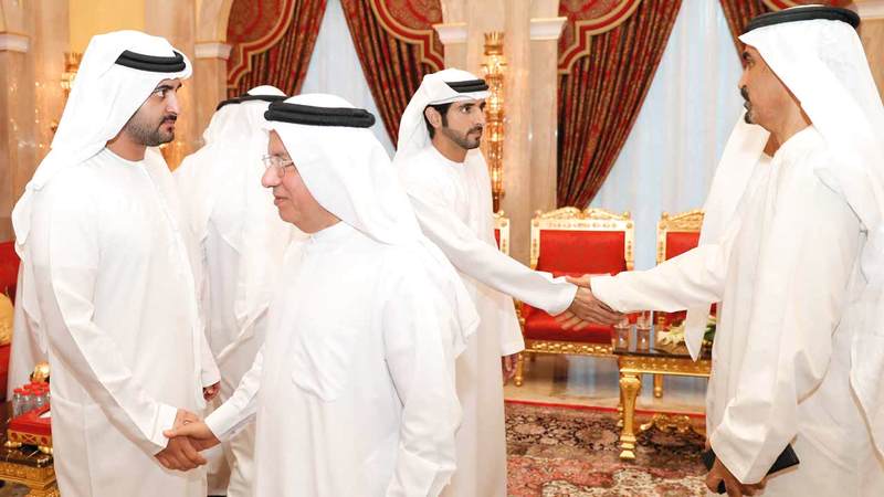 فقد تقبل سموه، بحضور سمو الشيخ حمدان بن محمد بن راشد آل مكتوم، ولي عهد دبي، وسمو الشيخ مكتوم بن محمد بن راشد آل مكتوم، نائب حاكم دبي، التهاني بهذه المناسبة المباركة من رؤساء ومديري الدوائر والمؤسسات الحكومية، وقيادات الصف الثاني في هذه الدوائر، والقيادات الشرطية والأمنية، الذين تمنوا لصاحب السمو نائب رئيس الدولة رئيس مجلس الوزراء حاكم دبي دوام الصحة والسعادة، ولدولتنا العزيزة اطراد التقدم والرخاء، في ظل قيادتنا الرشيدة.