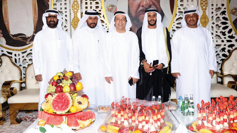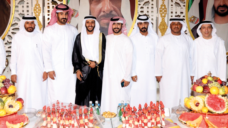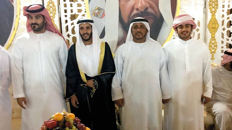 أقام مبارك بن علي العامري حفل استقبال بمناسبة زفاف حفيده عبدالله، نجل المرحوم ناصر بن مبارك العامري، إلى كريمة سعيد بن مبارك المنصوري، بقاعة الوثبة للأفراح في أبوظبي.
