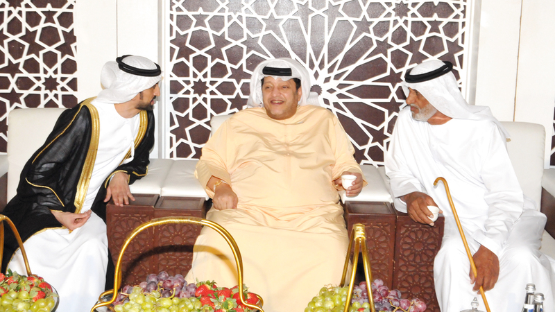 حضر الشيخ الدكتور سعيد بن طحنون آل نهيان، والشيخ محمد بن راشد بن مانع آل مكتوم، حفل الاستقبال الذي أقامه خميس علي حمد الشامسي، بمناسبة زفاف نجله سالم إلى كريمة محمد عبدالله بن قيعال النعيمي.