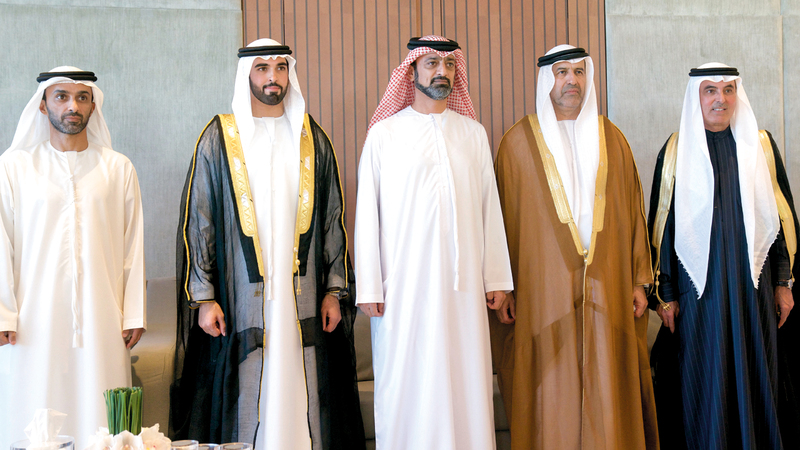 حضر سمو الشيخ حمدان بن محمد بن راشد آل مكتوم، ولي عهد دبي، يرافقه سمو الشيخ منصور بن محمد بن راشد آل مكتوم، رئيس مجلس دبي الرياضي، حفل الاستقبال الذي أقيم في مركز العين للمؤتمرات بمدينة العين، أمس، بمناسبة زفاف كلٍّ من: سالم محمد صالح مجرن العامري إلى كريمة صالح بخيت طاسة العامري، وسعيد محمد صالح مجرن العامري إلى كريمة صالح بخيت طاسة العامري، وعبدالله محمد صالح مجرن العامري إلى كريمة مبارك محمد شعفوري العامري.