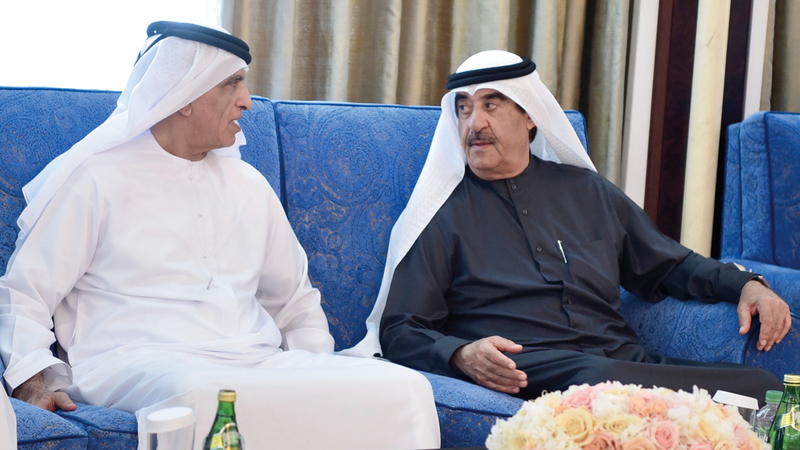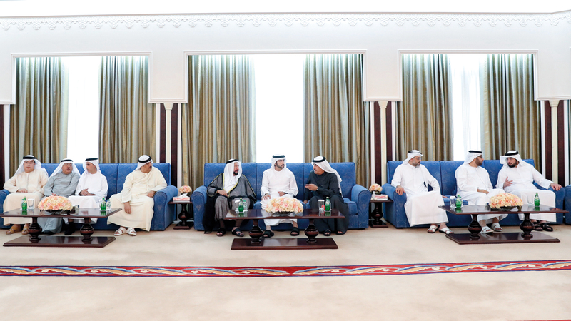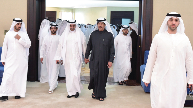 محمد بن راشد والحكام يعزّون سعود المعلا في وفاة الشيخ محمد الشامسي