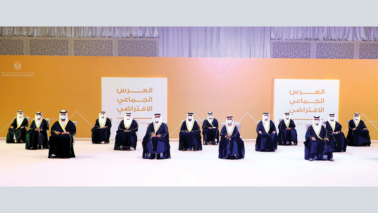 ونظمت وزارة تنمية المجتمع العرس عبر تقنية الاتصال المرئي في خمس مناطق على مستوى الدولة في وقت متزامن، بواقع 20 عريساً في كل حفل، في بادرة احتفالية تنموية تستهدف تعزيز نهج وتجربة الأعراس الجماعية.