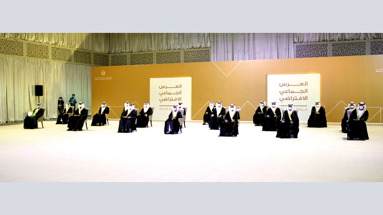 وأقيم العرس الجماعي الافتراضي تحت شعار «فرحة أبناء الإمارات»، في ظل إجراءات وقائية وتدابير احترازية لمواجهة تداعيات جائحة كورونا (كوفيد-19)، في خمسة مواقع على مستوى الدولة. وتضمن العرس فعاليات احتفالية متنوعة جرى تنظيمها «عن بعد»، ورسمت الفرحة على الوجوه، وعكست التلاحم والترابط بين القيادة والشعب في هذه الظروف الاستثنائية. وقد تم تنظيم العرس الجماعي لمواطني أبوظبي في نادي ضباط الشرطة بمدينة العين، وللعرسان من دبي في قاعة «البيت متوحد» بمنطقة الورقاء، وللعرسان من الشارقة وعجمان في مجلس ضاحية مويلح بالشارقة، ولأبناء رأس الخيمة وأم القيوين في قاعة «البيت متوحد» بأذن في رأس الخيمة، وللعرسان من إمارة الفجيرة في قاعة البستان.