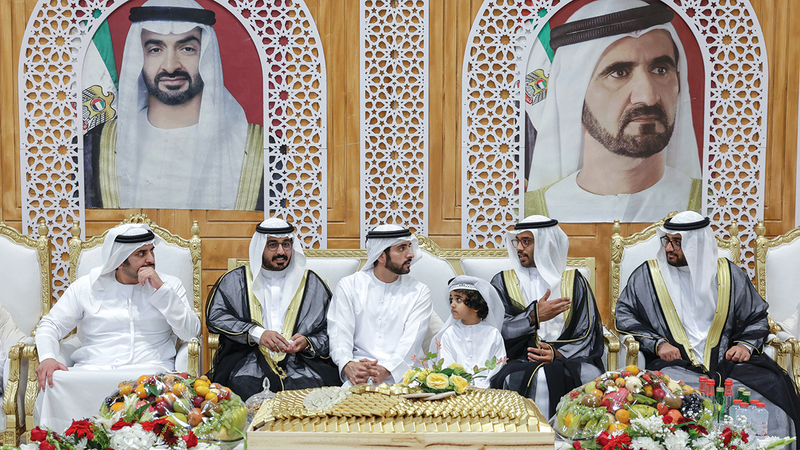 حمدان ومكتوم وأحمد بن محمد يحضرون أفراح بن دلموك في دبي