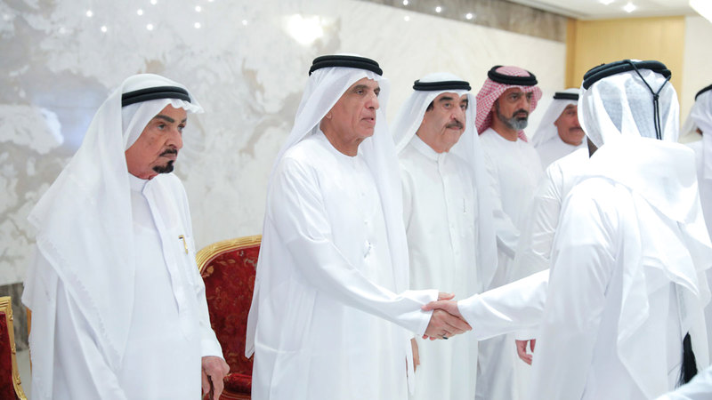 وتقبل صاحب السمو حاكم رأس الخيمة، والشيخ عمر بن صقر القاسمي، التعازي من الشيخ حميد بن أحمد المعلا، والشيخ أحمد بن سعود بن راشد المعلا، نائب رئيس المجلس التنفيذي لإمارة أم القيوين، والشيخ أحمد بن حميد النعيمي، ممثل صاحب السمو حاكم عجمان للشؤون الإدارية والمالية، والشيخ راشد بن حميد النعيمي، رئيس دائرة البلدية والتخطيط في عجمان، والشيخ خالد بن عبدالله القاسمي رئيس هيئة الشارقة للموانئ والجمارك والمناطق الحرة، والشيخ سالم بن عبدالرحمن القاسمي، رئيس مكتب سمو حاكم الشارقة، والشيخ حميد بن عمار النعيمي، والشيخ راشد بن عمار النعيمي نائب رئيس نادي عجمان، والشيخ عبدالله بن ماجد النعيمي، مدير عام مكتب شؤون المواطنين، والشيخ محمد بن سلطان بن محمد القاسمي، والشيخ سعود بن سلطان بن محمد القاسمي، مدير مكتب الشارقة الرقمية، ومحمد سعيد الرقباني المستشار الخاص لصاحب السمو حاكم الفجيرة، وعدد من الشيوخ وكبار المسؤولين والمواطنين.