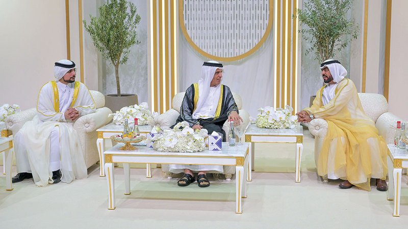 تلقى صاحب السمو الشيخ محمد بن راشد آل مكتوم، نائب رئيس الدولة رئيس مجلس الوزراء حاكم دبي، التهاني والتبريكات من صاحب السمو الشيخ سعود بن صقر القاسمي، عضو المجلس الأعلى حاكم رأس الخيمة، وسمو الشيخ سلطان بن محمد بن سلطان القاسمي، ولي عهد ونائب حاكم الشارقة، بمناسبة زفاف مانع نجل الشيخ محمد بن راشد بن مانع آل مكتوم إلى كريمة صاحب السمو الشيخ محمد بن راشد آل مكتوم، وذلك خلال حفل الاستقبال الذي أقيم أمس في قاعة زعبيل بمركز دبي التجاري العالمي.