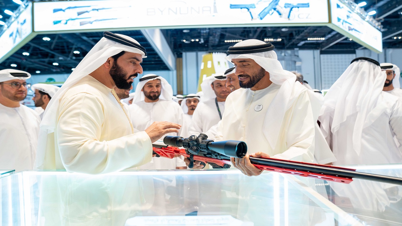 وتفقد سموه خلال الزيارة عدداً من الأجنحة المحلية والأجنبية المشاركة في المعرض، واطلع بجناح شركة «إنترناشيونال غولدن غروب» الإماراتية على منتجاتها في المجالات العسكرية وأسلحة وبنادق الصيد والفروسية.