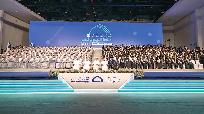 وأعلن العيان باسم مجلس أمناء كليات التقنية العليا، تخريج (455) خريجاً وخريجة في كليات التقنية العليا في دبي، دفعة العام الأكاديمي 2023/2022 «قادة اليوم للغد»، الذين أكملوا دراستهم بنجاح، وحصلوا على شهاداتهم الجامعية بجدارة واستحقاق، مباركاً لهم تخرجهم، متمنياً لهم كل التوفيق والنجاح.