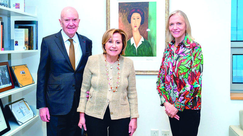 وتقدمت نائب رئيس جامعة نيويورك أبوظبي، مارييت ويسترمان، بخالص الشكر إلى فيروز وجان بول فيلان اللذين تبرعا بهاتين اللوحتين الفنيتين الرائعتين للجامعة، فهما من ذواقة الفن ومن كبار شخصيات المشهد الفني في الدولة، ولطالما ساندا الجامعة ورواق الفن.