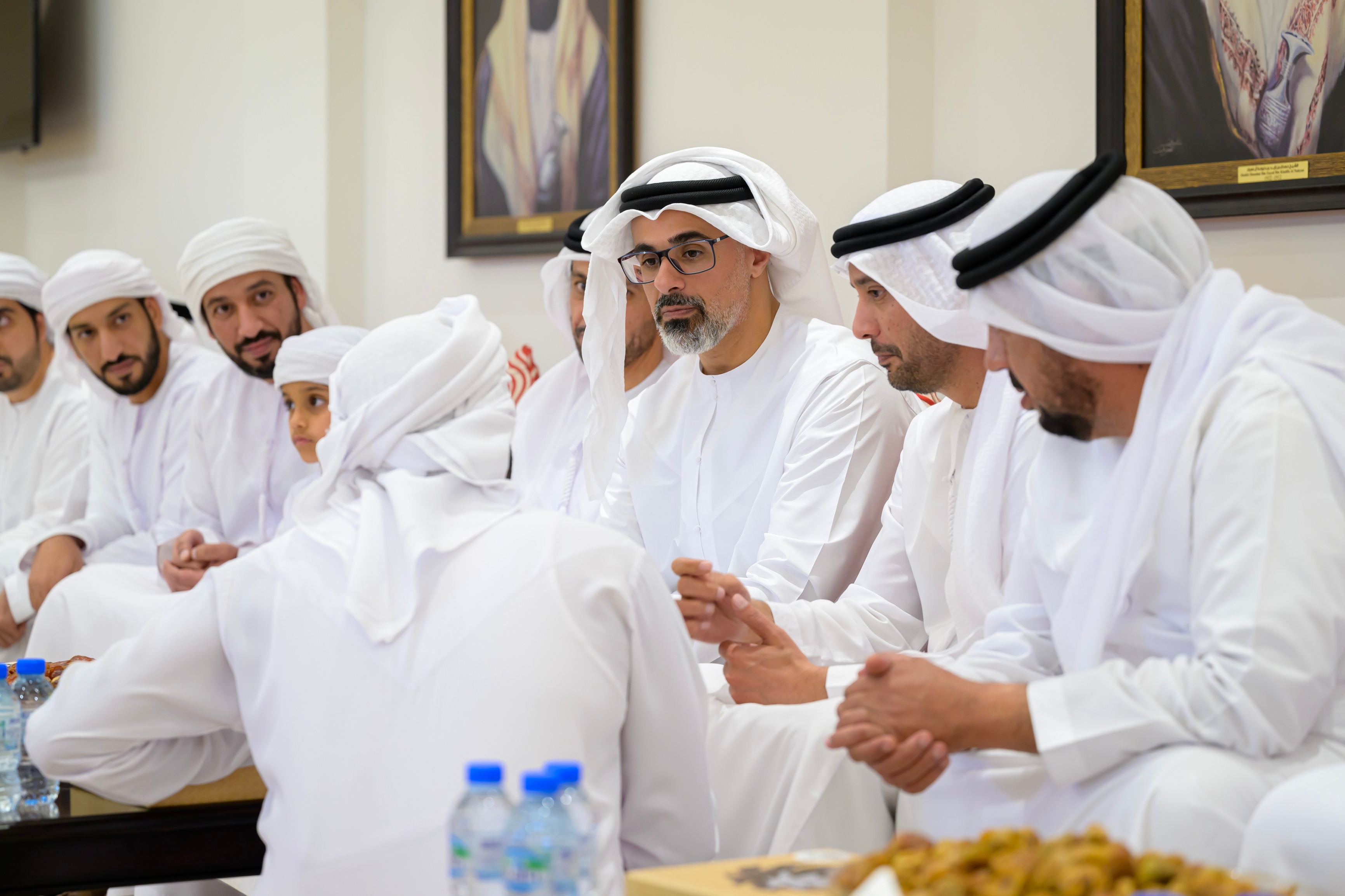 قدم سمو الشيخ خالد بن محمد بن زايد آل نهيان، ولي عهد أبوظبي، واجب العزاء في وفاة المغفور له سعيد بن بخيت المذيوبي الكتبي، خلال زيارة سموه مجلس الريف في مدينة العين.