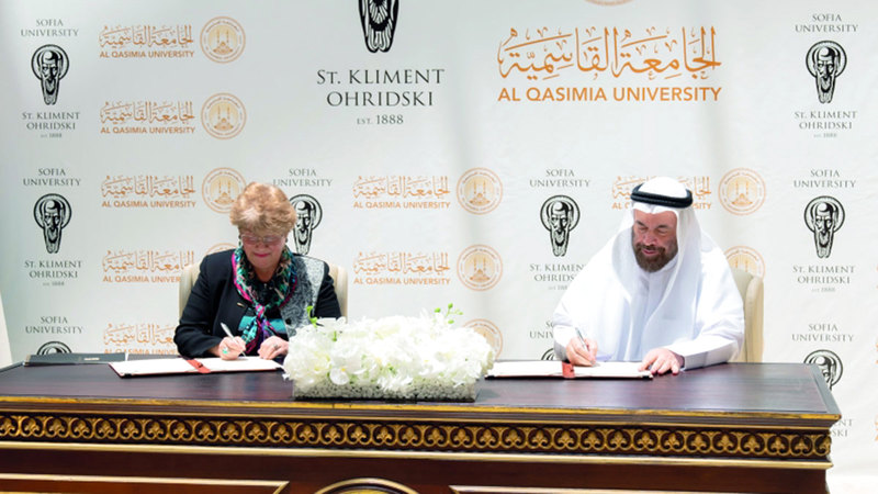 وقّعت الجامعة القاسمية في الشارقة مذكرة تفاهم مع جامعة صوفيا البلغارية، بهدف تعزيز التعاون العلمي والأكاديمي، وتبادل الخبرات التعليمية والبحثية، وتنظيم المؤتمرات والندوات المشتركة، وتعليم اللغة العربية لغير الناطقين بها، والإسهام في نشر الأبحاث العلمية والكتب الأكاديمية بين الجامعتين.