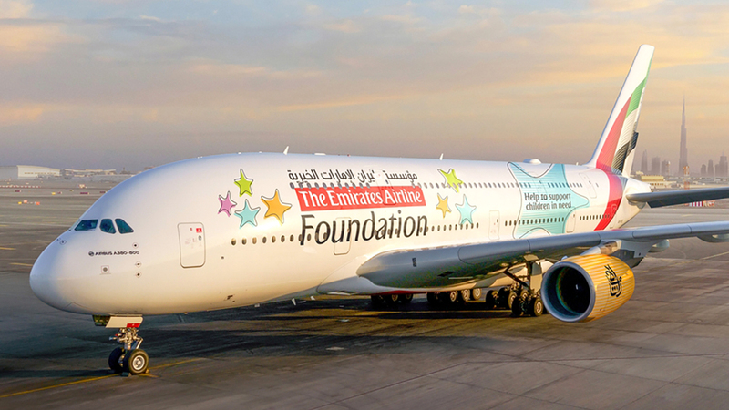 «طيران الإمارات» تكشف عن كسوة جديدة لطائرة «إيرباص A380» تحمل شعار مؤسستها الخيرية